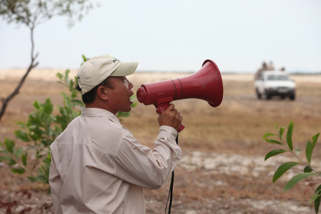 | Nhân viên giám sát bật còi hụ báo động và thông báo cho tất cả phải vào chỗ nấp an toàn |