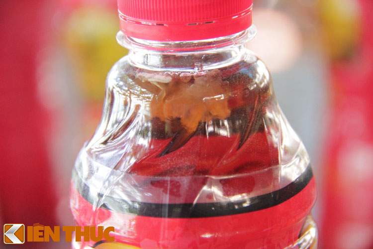 | Nhiều chai trà Dr.Thanh có chất nhầy nổi lềnh phềnh ở phần trên cổ chai. |