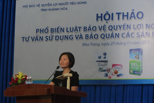 Bà Nguyễn Thị Trang, Phó Chủ tịch Hội BVQLNTD tỉnh Khánh Hoà cho biết: “Bên cạnh các sản phẩm khác xuất hiện trên thị trường, theo khảo sát của Hội, tại Khánh Hoà các sản phẩm sữa của Vinamilk, đặc biệt sữa chua ăn Vinamilk được người tiêu dùng rất tin cậy và sử dụng nhiều. Tuy nhiên, hiện người tiêu dùng, nhất là những bà mẹ trẻ vẫn chưa hiểu được hết các sản phẩm, công dụng sản phẩm, cũng như cách bảo quản sản phẩm…Chúng tôi mong rằng trong thời gian tới, ngoài Vinamilk, sẽ còn nhiều doanh nghiệp khác quan tâm nhiều hơn đến người tiêu dùng, phối hợp với chúng tôi tổ chức những Hội thảo như thế này, để người tiêu dùng có thêm cơ hội tiếp cận trực tiếp với nhà sản xuất, tìm hiểu về sản phẩm, an tâm khi nghe những tin đồn thất thiệt, thiếu cơ sở”.