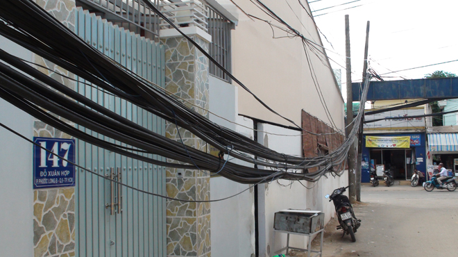 Nhiều ngày nay, đoạn dây cáp trên đường 145, P.Phước Long B, Q.9 (TP.HCM) sà xuống lòng đường khiến việc đi lại của người dân gặp khó khăn (ảnh). Người dân ở đây cho biết sau khi họ phản ảnh, một đơn vị đã đến nâng bó cáp lên nhưng chỉ mấy ngày sau bó cáp lại sà xuống như cũ. Theo ông Võ Hồng Minh Danh - phó giám đốc Công ty Điện lực Thủ Thiêm, ngay sau khi nhận được thông tin, nhân viên của công ty đã đi kiểm tra vị trí dây cáp võng xuống đường. Công ty sẽ tiếp tục phối hợp với đơn vị quản lý đường dây cáp khắc phục sự cố này. |