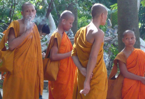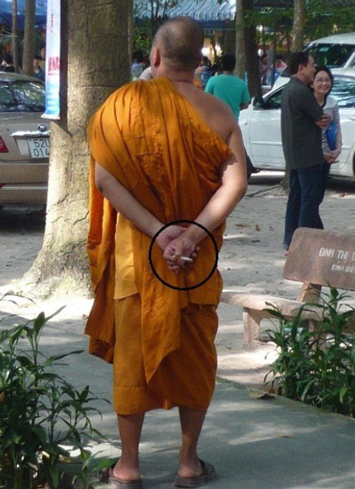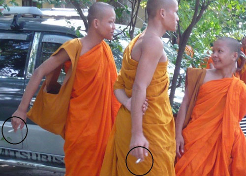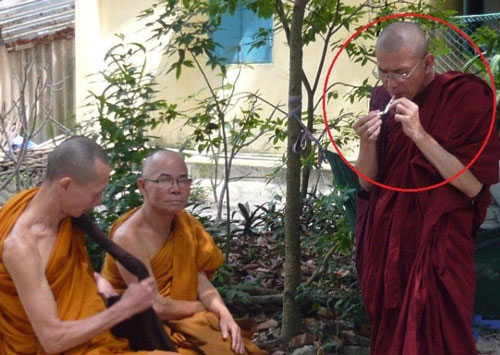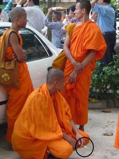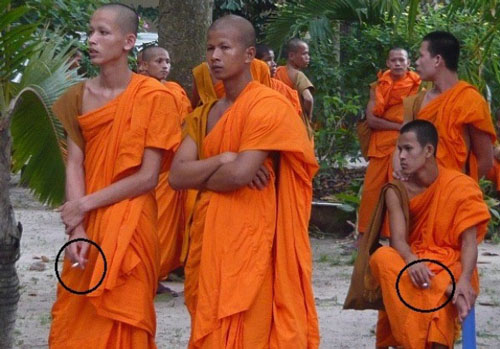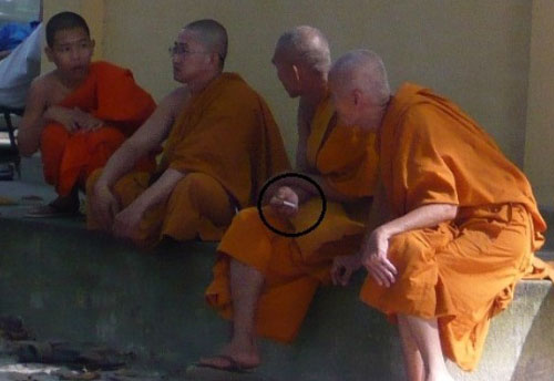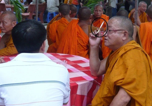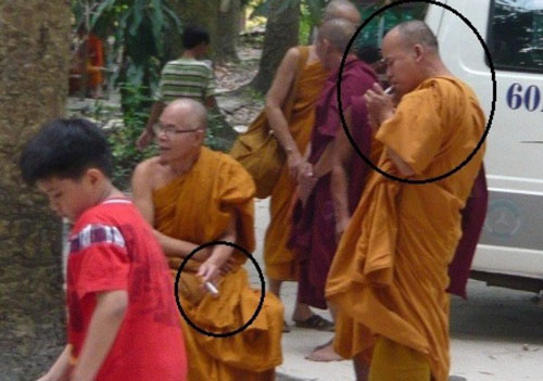 | Các sư khắp nơi tựu về, sân chùa rợp màu y áo…và một vài điếu thuốc lá |