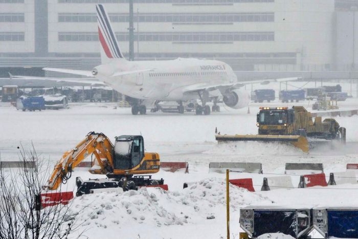 Sân bay Charles-de-Gaulle (Pháp) ngổn ngang băng tuyết - Ảnh: AFP