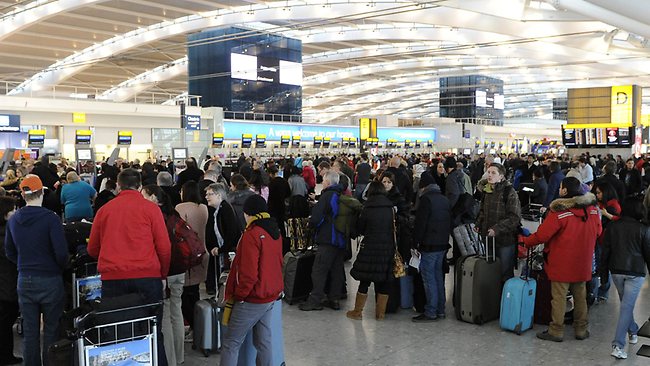 Hành khách mắc kẹt tại sân bay Heathrow (Anh) - Ảnh: Reuters
