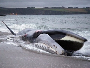 (11:19:41 AM 08/09/2012)(Tin Môi Trường) - Một con cá voi dài 10 m, nặng khoảng 6 tấn, bị chết đã dạt vào bờ khu vực biển phía Nam huyện Cianjur, tỉnh West Java của Indonesia hôm 6/9.