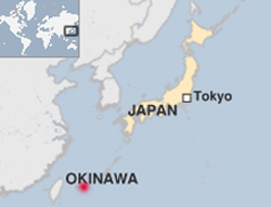 Đảo Okinawa (dấu đỏ), Nhật Bản. Ảnh: BBC