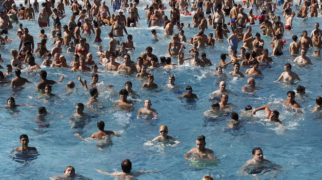 | Bể bơi công cộng Stadionbad tại Vienna, Áo là địa điểm lý tưởng để người dân chạy trốn nắng nóng - Ảnh: Reuters |