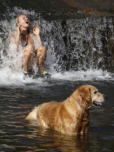 | Cả người và động vật đều thích thú khi được ngâm mình trong làn nước mát lạnh của sông Berounka, gần thủ đô Prague, Cộng hòa Czech. Cũng như phần lớn nước châu Âu, CH Czech đang trải qua mùa hè khắc nghiệt với với nhiệt độ thường xuyên duy trì ở mức 380C - Ảnh: AP |