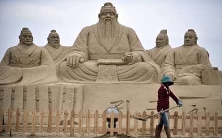 Tượng cát Khổng Tử được đắp trong lễ hội văn hóa bãi biển ở Hạt Pingtan thuộc tỉnh Fujian, miền đông nam Trung Quốc