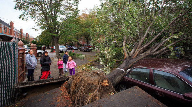 Cây cối ngã đổ sau khi cơn bão Sandy đi qua tại Queens, New York - Ảnh: Thanh Tuấn