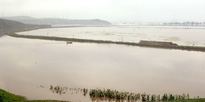 | Nước ngập trắng đồng - Ảnh: KCNA, news.cn |