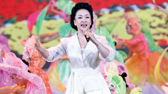| Bà Bành Lệ Viên trong một buổi biểu diễn tại Bắc Kinh hồi tháng 9-2009 - Ảnh: AFP |