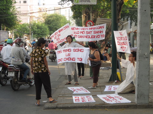 Mặc áo tang khiếu nại trước Sở Y tế TPHCM