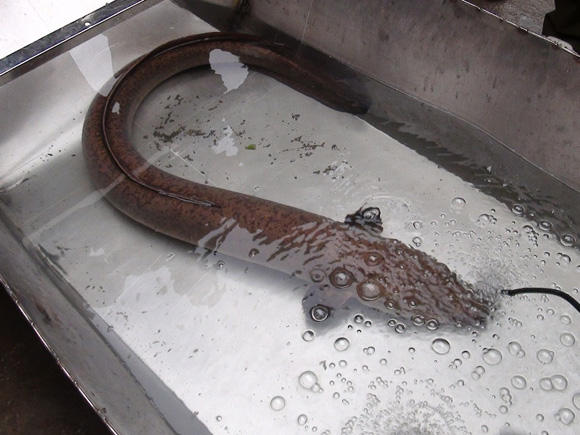 | Con lươn dài 1,5m nặng 10 kg mà anh Tý bắt được |