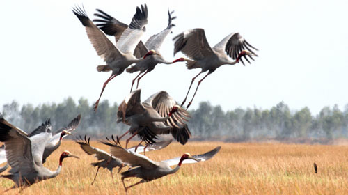 Sếu đầu đỏ - một trong những loài đặc hữu sinh sống tại vườn quốc gia Tràm Chim - Ảnh: Vũ Ngọc Long. Nguồn: agrivn.com