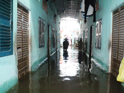 TPHCM: Vỡ bờ bao, nhà dân chìm trong nước