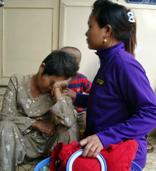 | Một bệnh nhân vật vã trong khi chờ khám ung thư tại Bệnh viện Ung bướu TP.HCM - Ảnh: L.TH.H. |