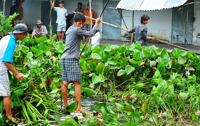 | Người của Công ty Quốc Việt truy lùng cá sấu sổng chuồng sáng 19/10, thu hút đông đảo người xem - Ảnh: Đông Triều |