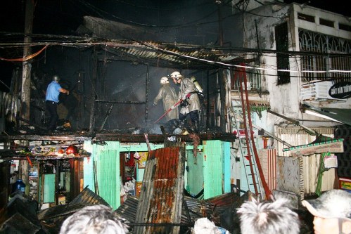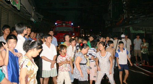 Vài phút sau, cảnh sát PCCC quận 8 huy động 7 xe chữa cháy cùng hàng chục lính cứu hỏa đến hiện trường dập lửa, phong tỏa toàn tuyến đường Xóm Củi.