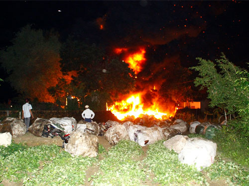 Ngọn lửa cao hơn 15m nhìn từ xa của kho phế liệu