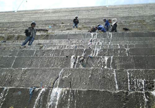 Trong đó, công tác thi công trên khô từ cao trình 140m đến 177m đã hoàn thành. Công tác thi công xử lý thấm dưới nước từ cao trình 140m xuống chân đập (nơi có 10 khe nhiệt có lượng thấm lớn hơn) đã thực hiện được 70% khối lượng bằng việc phụt phụ gia chịu nước để bịt kín khe hở thân đập (LW polyurethane) và lắp tấm phủ chống rò rỉ SR (chất lấp đầy các khe nhiệt), đạt yêu cầu về kỹ thuật khi lưu lượng thấm trung bình qua 10 khe nhiệt này giảm 80%. Riêng các khe 11 và 16 có độ thấm lớn giảm 90%. Tổng lưu lượng thấm qua các khe nhiệt đã giảm 98% (từ 21,2 lít/giây xuống còn 0,4 lít/giây).