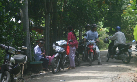 | Nhiều người dân đến nhà ông Kim Lụa chờ được bốc thuốc trị bá bệnh. |