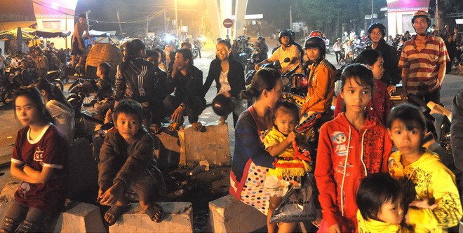 | Người dân Bắc Trà My hoảng hốt đổ ra đường vì sợ động dất - Ảnh: Tấn Vũ |