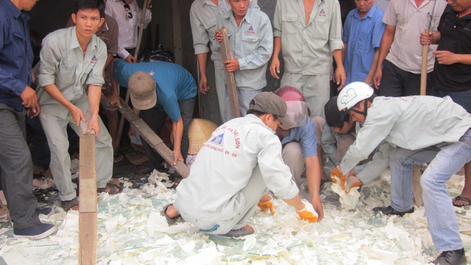 PV có mặt ở hiện trường chứng kiến bà Thu nằm trong đống kính, với tay gào thét và kêu cứu thảm thiết. Người dân xung quanh đã cùng xúm vào dùng găng tay, cây gỗ để nâng từng tấm kính vỡ giải thoát cho bà.