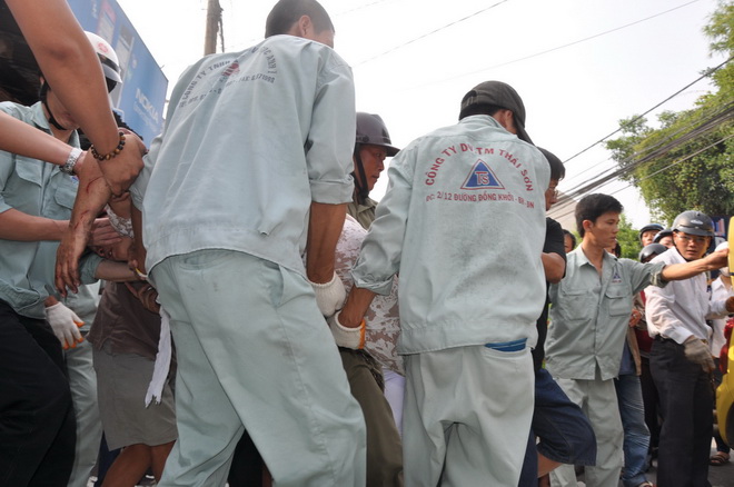 Phải mất gần 20 phút bà Thu mới được người dân đưa đi cấp cứu với thân thể đầy máu.