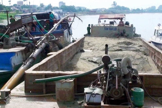 Hai phương tiện khai thác cát lậu bị Đội Cảnh sát môi trường Công an TP Biên Hòa (Đồng Nai) bắt giữ đưa về xử lý cuối tháng 12-2016 - Ảnh: A LỘC