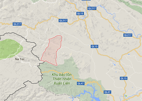 Khoang màu đỏ là xã Yên Khương, huyện Lang Chánh.