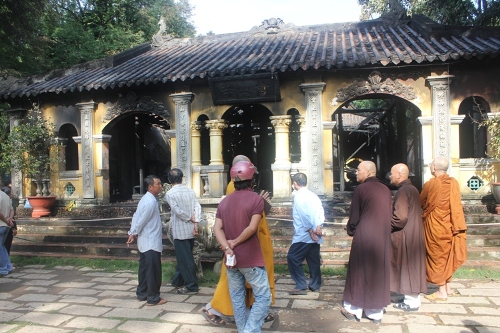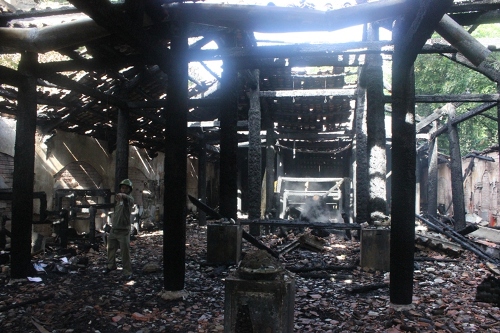 | Toàn bộ ngôi chánh điện bằng gỗbị thiêu rụi. |