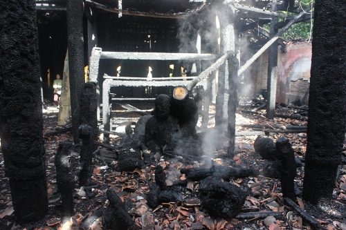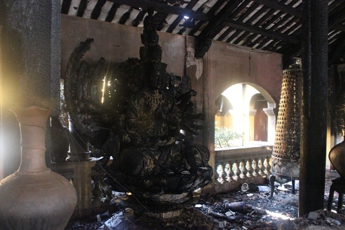 | Tượng phật Thiên thủ, thiên nhãn bị cháy đen. |