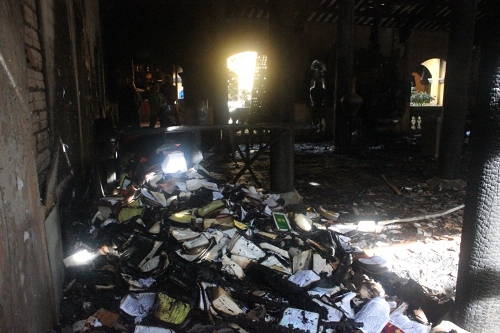 | Hàng trăm cuốn kinh quý bị cháy. |