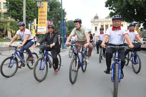 Hoàng Thái tử Đan Mạch và Lãnh đạo các Bộ, ngành đã cùng tham gia đạp xe từ Vườn hoa Nhà Hát Lớn tới Vườn hóa Lý Thái Tổ