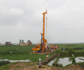 | Mũi khoan nhồi đầu tiên sau lễ khởi công - Ảnh VGP/Từ Lương |