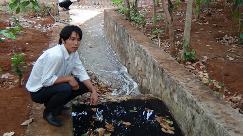 Hồ chứa nước thải của Công ty Meisheng đã đầy và tràn ra ngoài – Ảnh: Đ.Hà
