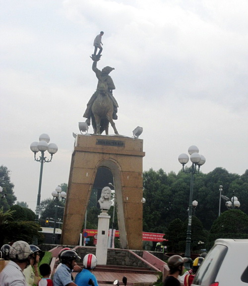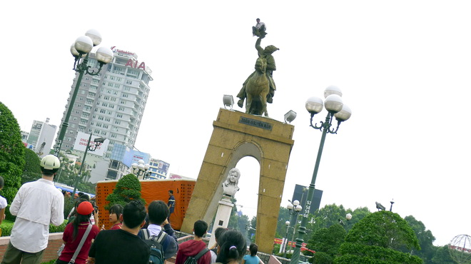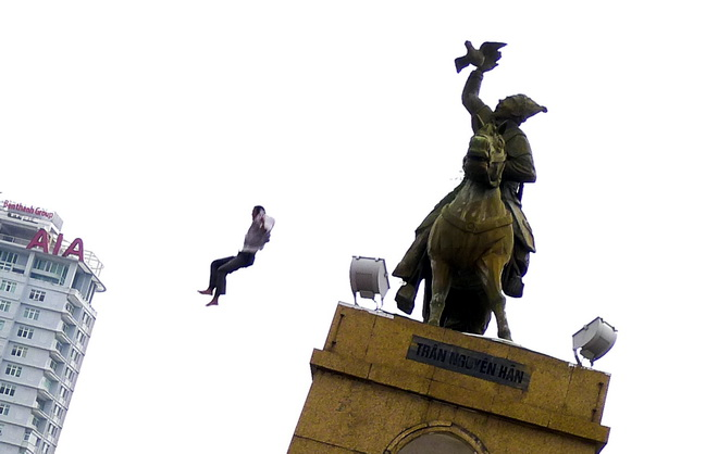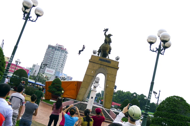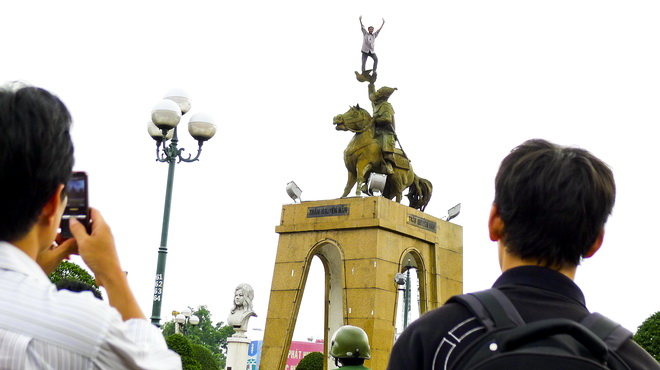 | Chùm ảnh người say xỉn leo lên tượng Trần Nguyên Hãn, Quận 1, TP.HCM để quậy phá - Ảnh: Lê Quang Nhật |