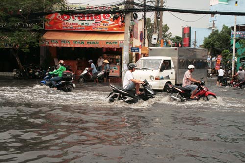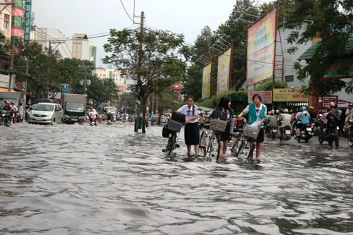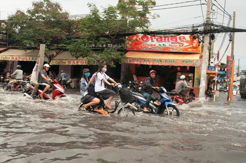 Mưa lớn, người dân TP.HCM bì bõm trong nước