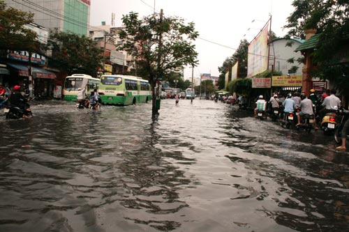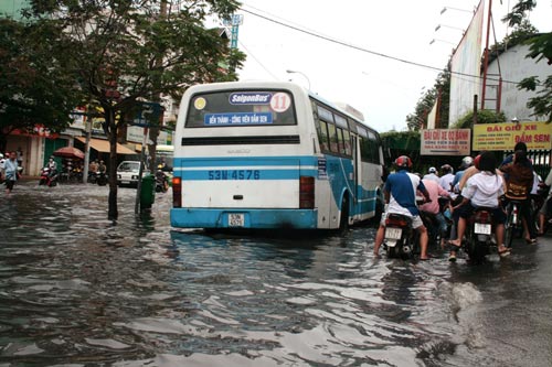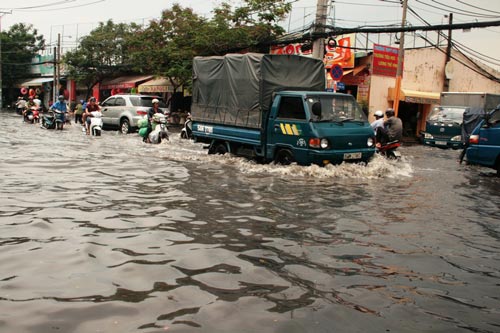 Các tuyến đường Khuông Việt, đường dọc hai bờ kênh Tân Hóa (quận Tân Phú), đường An Dương Vương (quận 8)… đều bị ngập sâu trong nước.