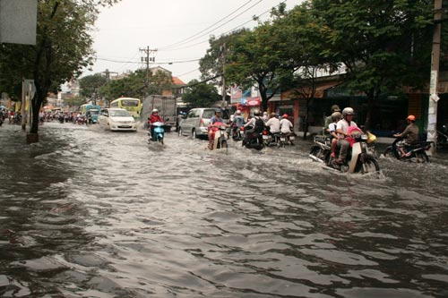 | Cơn mưa lớn đã nhanh chóng khiến con đường này ngập nước. |