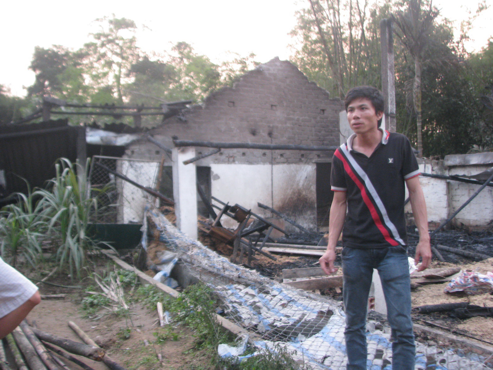 Vụ cháy xảy ra vào lúc 12h 30 phút ngày 22/3/2012 tại trạng trại của bà Nguyễn Thị Niên, xóm Phượng Đình, xã Đồng Văn, huyện Thanh Chương, Nghệ An, tự nhiên bị bốc cháy.