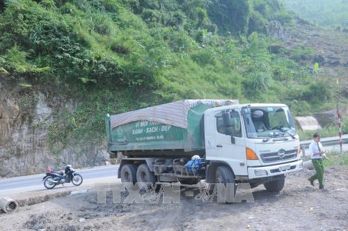Xe chuyên dụng chở chất thải bị bắt tại hiện trường. Ảnh :Vũ Hoàng Giang