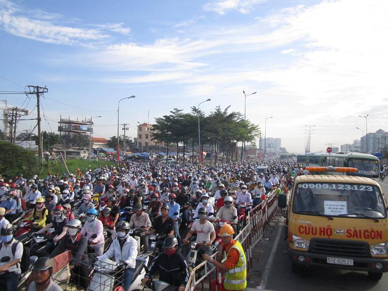 Khoảng 6g45 phút, các phương tiện giao thông đổ về cầu ngày càng lớn khiến tình trạng giao thông bắt đầu ùn ứ và sau đó thì kẹt xe nặng ở cả hai phía cầu Sài Gòn là Q.2 và Q.Bình Thạnh.