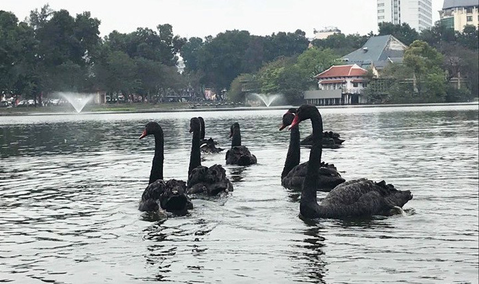 Trước đó, ngày 5-2, Công ty TNHH một thành viên Thoát nước Hà Nội đã thả 12 con thiên nga đen và trắng xuống hồ Hoàn Kiếm nuôi thí điểm.