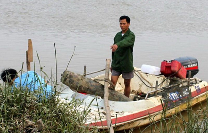 Sau hơn 3 tiếng đồng hồ, huyện đội Hà Trung cùng với bộ đội công binh tiến hành trục vớt di chuyển quả bom ra nơi an toàn để vô hiệu hóa.