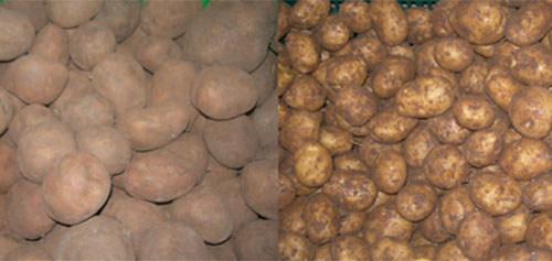 Khác biệt của khoai tây Trung Quốc (trái) và khoai tây Đà Lạt (phải).Ảnh VNE.