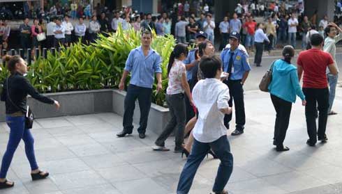 | Cơn dư chấn của trận động đất mạnh 8,9 độ richter tại Indonesia ngày 11/4 đã gây rung lắc các tòa nhà cao tầng tại TP HCM làm nhiều người hoảng hốt lao xuống đường. Ảnh: Vi Khoa. |