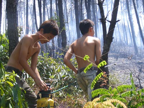 Do thời tiết nắng nóng và hanh khô kéo dài nhiều ngày qua, thêm nữa do có gió Tây Nam thổi mạnh nên chỉ trong thoáng chốc cả vùng đồi thông đã bị khói lửa bao trùm.