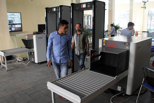 Hệ thống kiểm tra an ninh ở trụ sở UBND TP HCM được thử nghiệm sáng nay. Ảnh: H.C