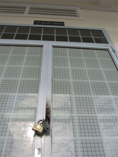 (19:45:51 PM 30/01/2013)Từ tầng trệt đến tầng lầu của trụ sở UBND xã mới xây đều khóa cửa kín mít. Ngoài sân, chỉ có 4 công nhân đang làm việc. Một công nhân cho biết, cán bộ trong UBND xã đã về hết, có nhiều người dân đến xã chứng giấy tờ đành ngậm ngùi quay về vì không có ai tiếp.